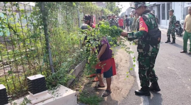Anggota Koramil 03 Serengan Karya Bakti Bersama Masyarakat