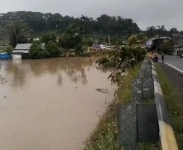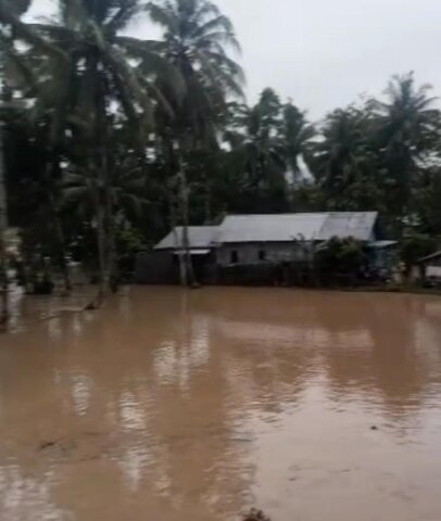 Pekon Penggawa V Ilir, Dusun Pedada, teredam banjir Sungai Way Krui, hingga meluap ke rumah warga Kecamatan Way Krui.