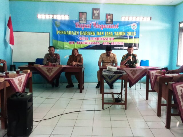 Jateng, Kebumen – Danramil 09/Kutowinangun Kapten Cpm Aris Yulianto menghadiri rapat negosiasi pengadaan barang dan jasa tahun 2023 di Balai Desa Tunjungseto, Kecamatan Kutowinangun, Kabupaten Kebumen. Senin (06/11/2023).