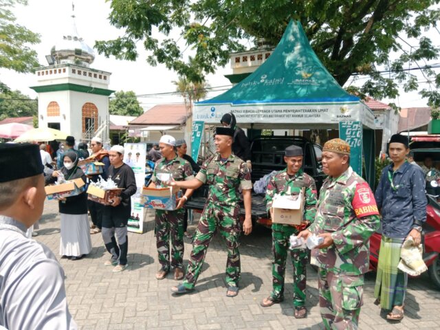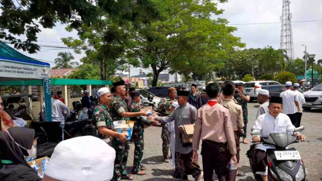 Kalsel, Barabai – Pada Jumat Berkah, Kodim 1002/Hulu Sungai Tengah bersama Baznas HST membagikan 1500 bungkus Snack di Masjid Agung Riadhushalihin Barabai setelah sholat Jumat (10/11).