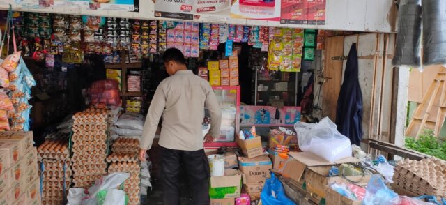 Aceh, Lhokseumawe – Personel Polsek Simpang Keuramat melakukan patroli rutin di pasar Keude Simpang Empat, Kecamatan Simpang Keuramat, Aceh Utara wilayah hukum Polres Lhokseumawe, Rabu (8/11/2023), dalam kegiatan tersebut personel mendatangi kedai sembako.