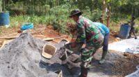 Babinsa Kaligarang Bersama Warga Gotong-Royong Mengecor Jalan Desa