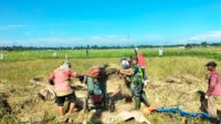 Babinsa Beraksi Dukung Langsung Petani dalam Proses Merontokkan Padi di Sawah