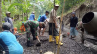Dukung Pembangunan Wilayah Binaan, Babinsa Bersama Warga Gotong Royong Pengecoran Jalan