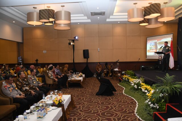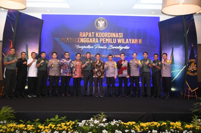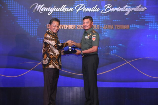 Jateng, Surakarta – Panglima Komando Daerah Militer (Pangdam) IV/Diponegoro, Mayjen TNI Widi Prasetijono, menghadiri rapat koordinasi penyelenggara Pemilu dengan tema “Mewujudkan Pemilu Berintegritas,”. Acara berlangsung di Hotel Lor In Solo, Selasa (15/11/2023).